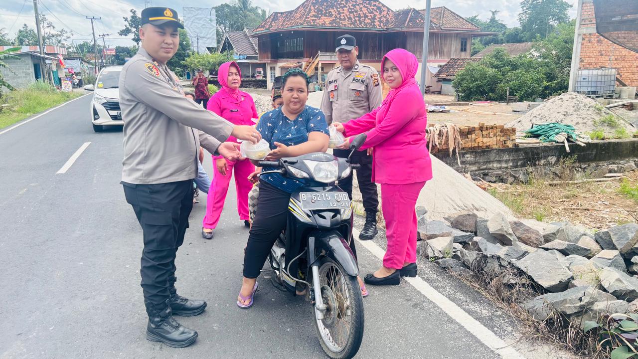 INEWSFAKTA.COM | Oku Timur – Polsek Madang Suku II, Polres Oku Timur, Polda Sumsel, Di bulan suci Ramadhan 1447 H / 2026 M, Polsek Madang Suku II bersama Pengurus Bhayangkari Ranting melaksanakan Pembagian Takjil kepada masyarakat yang melintas di depan Mapolsek Madang Suku II, Sabtu (28/02/2026).