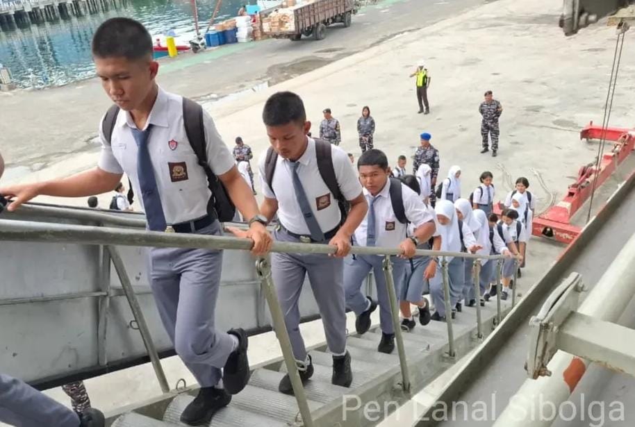 INEWSFAKTA.COM | TNI AL, Sibolga,- Dalam rangka memperkenalkan dunia kemaritiman kepada generasi muda, KRI Banda Aceh-593 yang tengah sandar di Pelabuhan Sibolga melaksanakan kegiatan Open Ship dengan menerima kunjungan siswa-siswi SMA Negeri 1 Matauli Pandan, bertempat di Pelabuhan Pelindo, Sibolga, Selasa (02/09/2025).