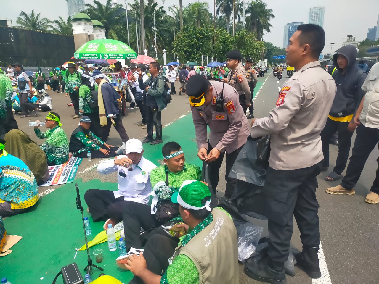 Kapolres Metro Jakarta Pusat Kombes Pol Reynold E.P. Hutagalung mengatakan pihaknya mengedepankan pendekatan persuasif dan dialogis dalam pelaksanaan tugas di lapangan. “Kita hadir untuk menjaga saudara-saudara kita yang menyampaikan pendapat. Seluruh personel harus utamakan pendekatan persuasif, dialogis, dan humanis,” ujar Reynold.