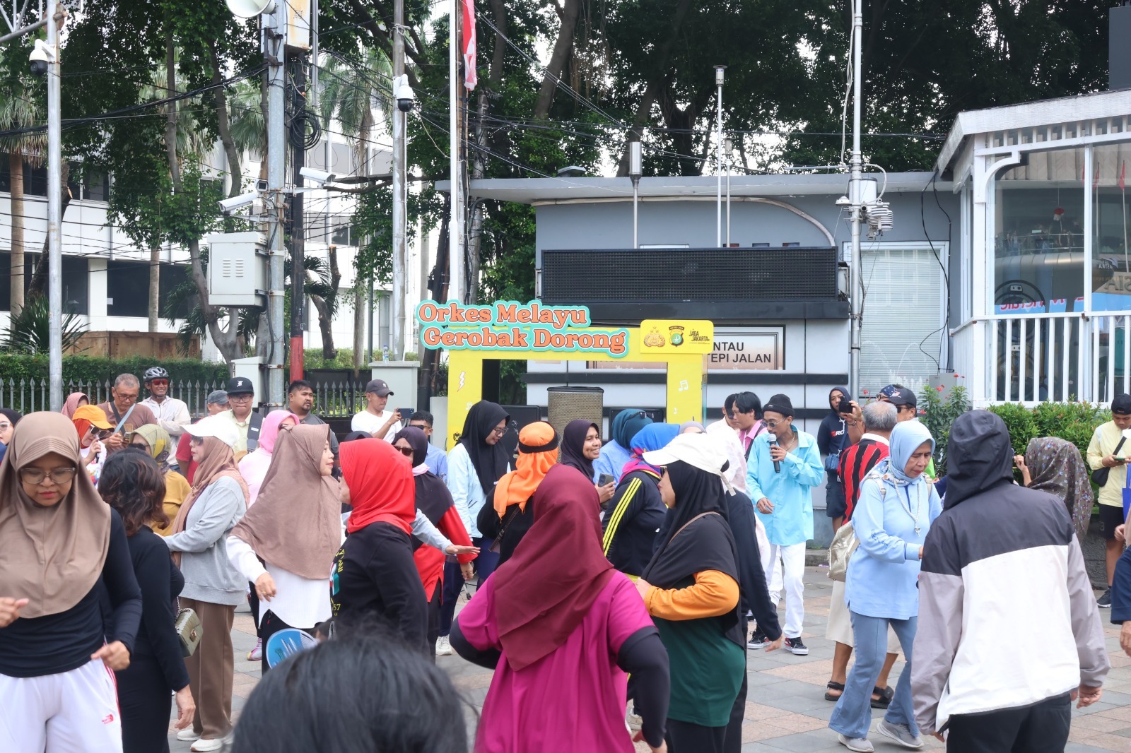 Sementara itu, penampilan Orkes Melayu Gerobak Dorong menambah semarak suasana Bundaran HI. Iringan musik dan nyanyian yang akrab di telinga masyarakat membuat warga ikut bernyanyi dan menari bersama.
