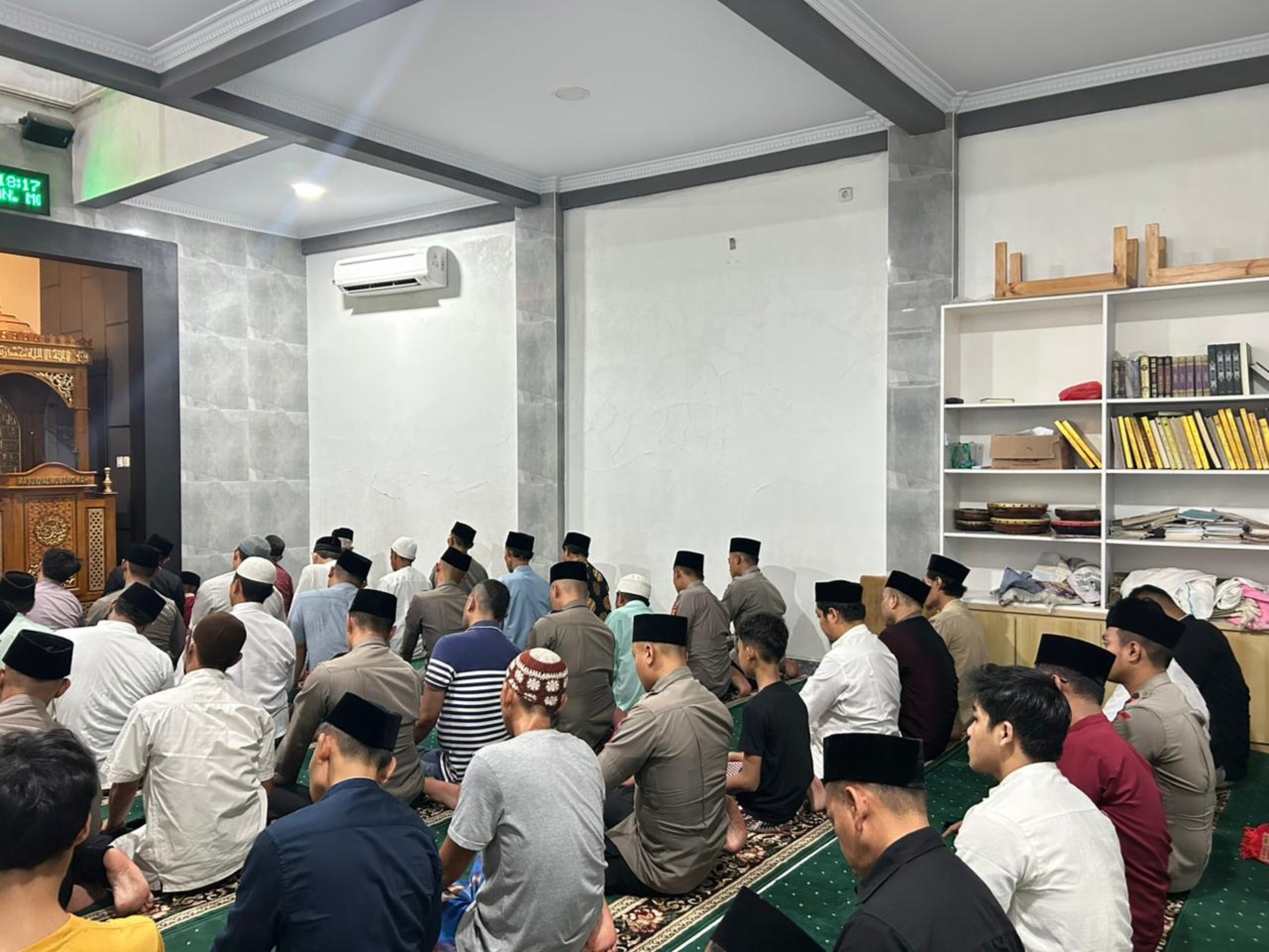 Kegiatan diawali dengan salat Isya berjamaah dan dilanjutkan tarawih serta tadarus Al-Qur’an. Personel Brimob berbaur dengan jamaah dan mengikuti rangkaian ibadah secara khidmat bersama warga setempat.
