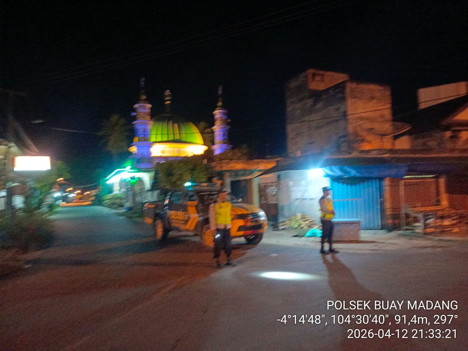 INEWSFAKTA.COM | Oku Timur – Kapolsek Buay Madang, Polres Oku Timur, Polda Sumsel, AKP, Suwandi, melaksanakan Patroli Subuh Di Desa Sumber Agung, Kecamatan Buay Madang, Kab. Oku Timur. Kegiatan tersebut dalam rangka menjaga situasi keamanan dan ketertiban masyarakat (Kamtibmas) ,di wilayah hukum Polsek Buay Madang, Senin (13/04/2026).