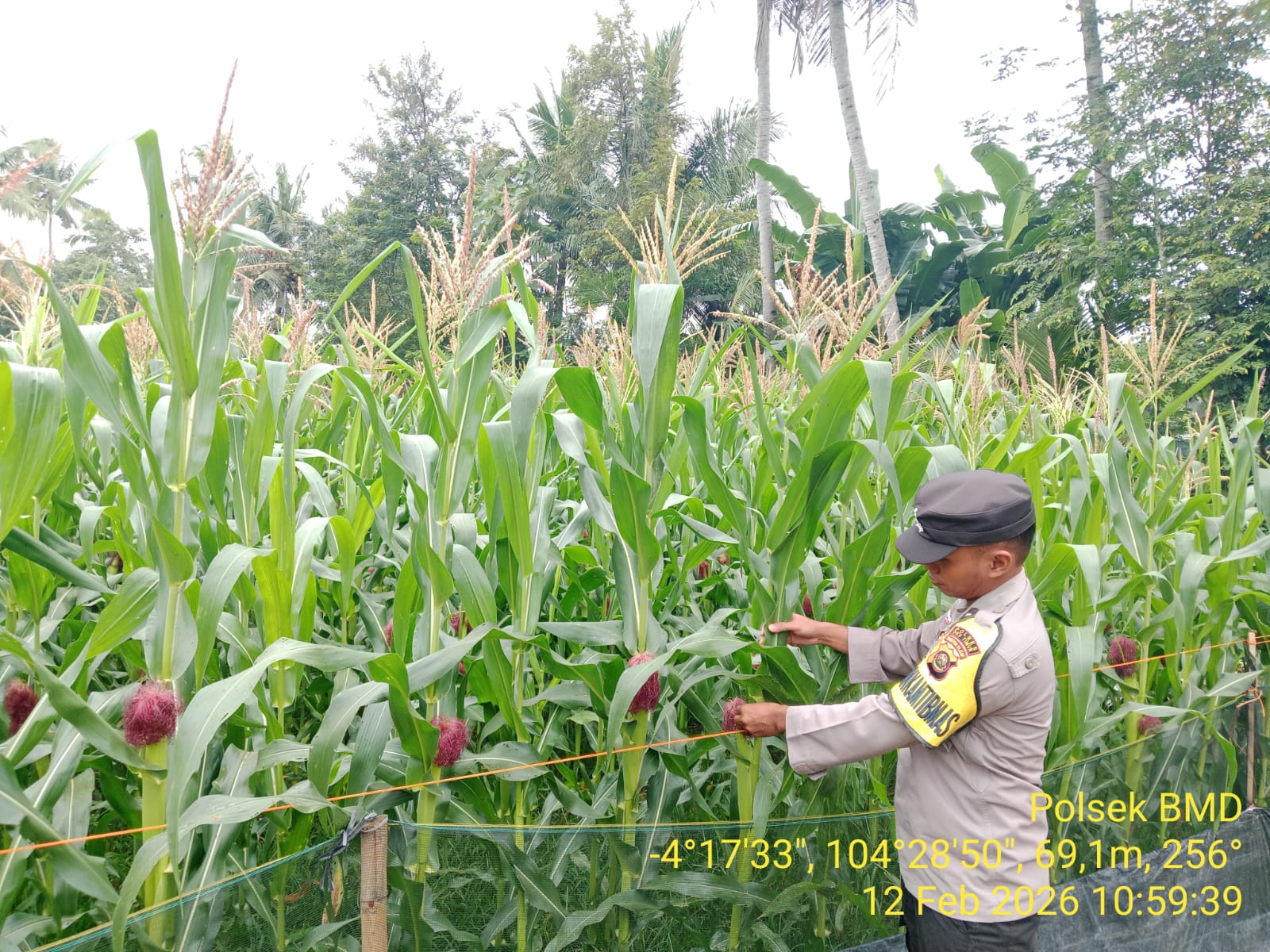 INEWSFAKTA.COM | Oku Timur – Bhabinkamtibmas Polsek Buay Madang, Polres Oku Timur, Polda Sumsel, melaksanakan pengecekan tanaman Jagung Manis dilahan pekarangan milik warga binaan Desa Sukaraja, kecamatan Buay Madang Kab. OKU Timur, Selasa (24/03/2026).
