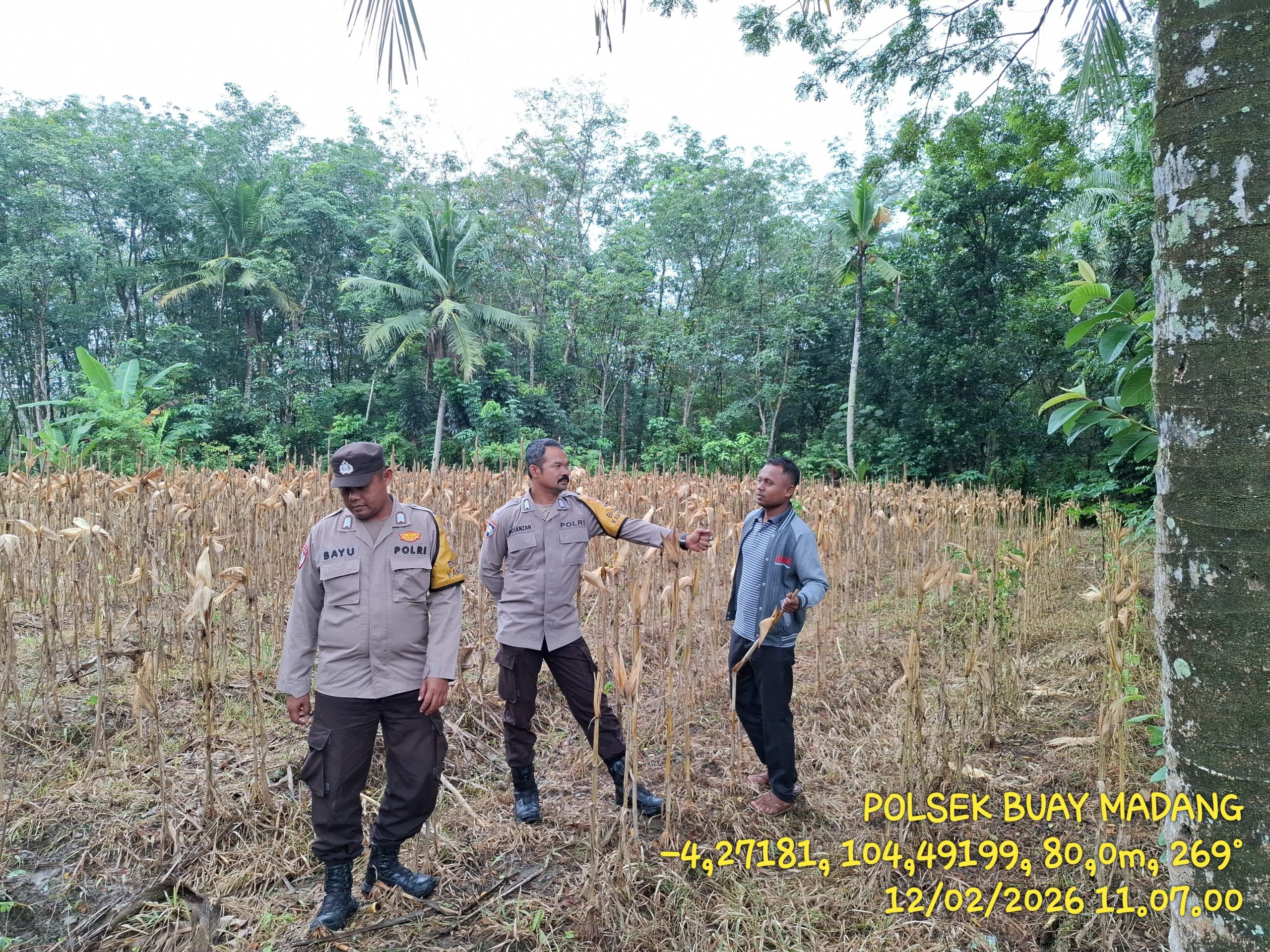 INEWSFAKTA.COM | Oku Timur – Personil Polsek Buay Madang, Polres Oku Timur Polda Sumsel, melaksanakan monitoring tanaman Jagung dipekarangan milik warga binaan Dusun Sidorejo Desa Kurungan Nyawa III, Kecamatan Buay Madang,Kab. Oku Timur. Kegiatan tersebut upaya mendukung Asta Cita Presiden Republik Indonesia, Prabowo Subianto, khususnya di bidang ketahanan pangan menuju Indonesia Emas, Sabtu (28/03/2026).