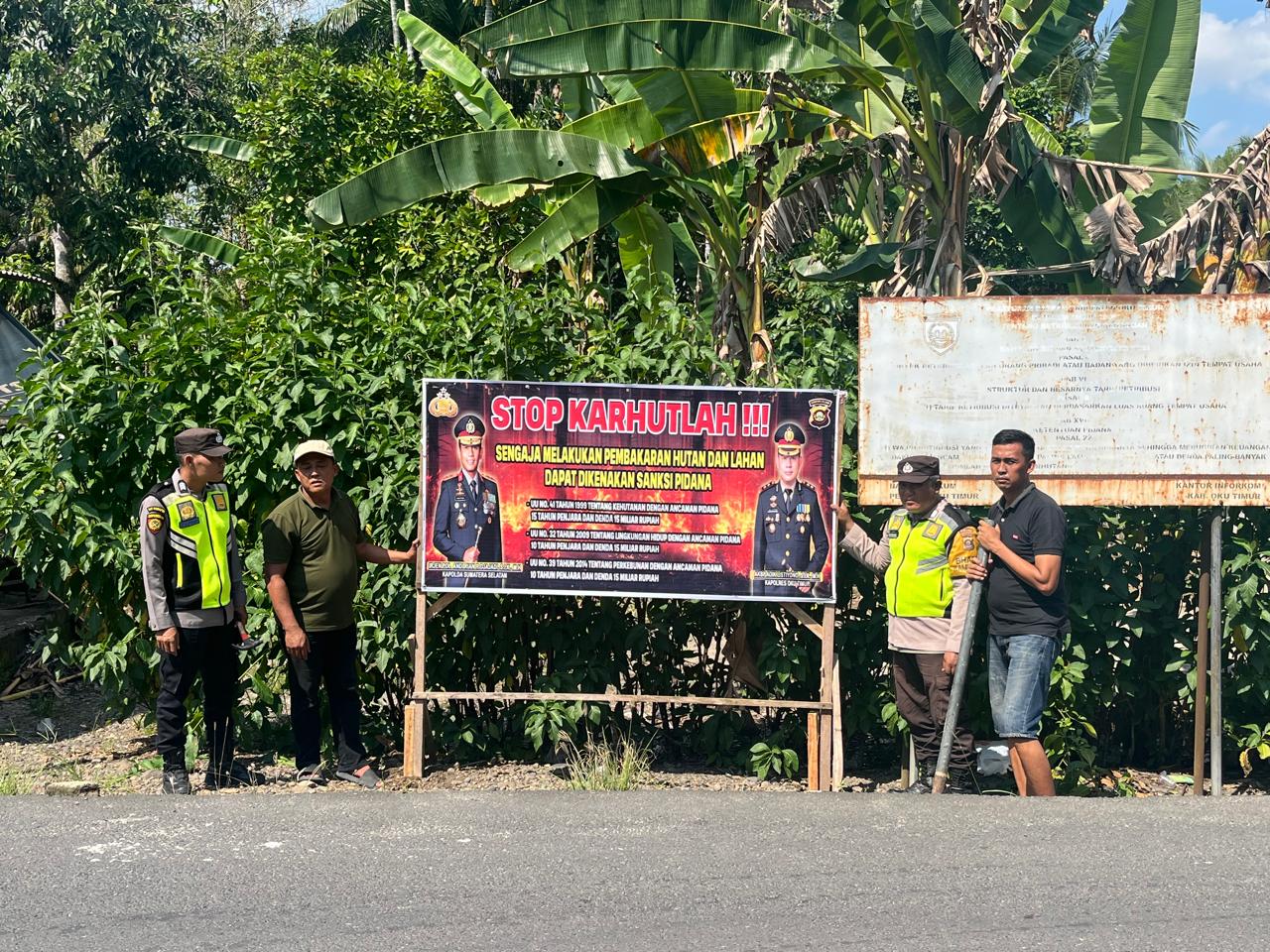 INEWSFAKTA.COM | Oku Timur – Personil Polsek Madang Suku II, Polres Oku Timur, Polda Sumsel, melaksanakan kegiatan Sosialisasi Karhutla dengan memasang Spanduk dan sebar maklumat di Desa Banding Agung Kec. Madang Suku III Kab. Oku Timur. Kegiatan tersebut dalam rangka upaya mencegah terjadinya kebakaran hutan dan lahan (Karhutla), Kamis (16/04/2026).