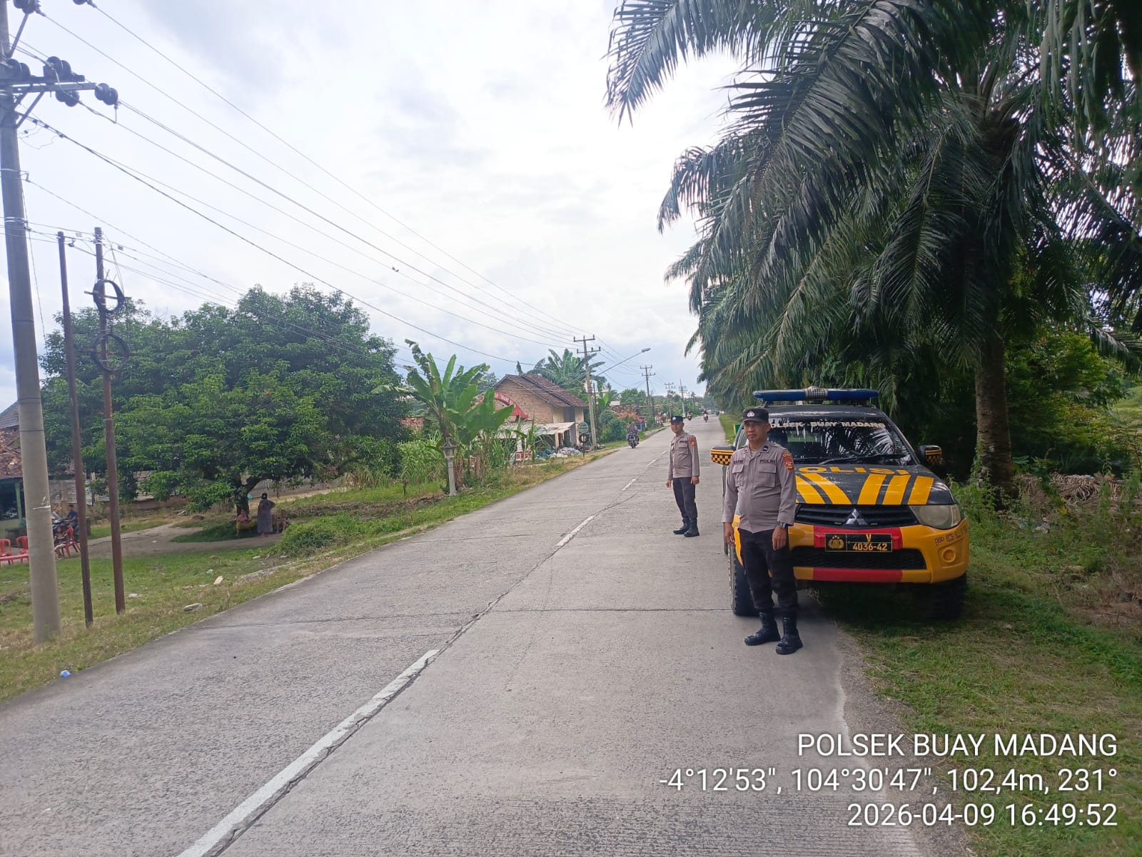 INEWSFAKTA.COM | Oku Timur– Anggota Polsek Buay Madang Polres Oku Timur Polda Sumsel , melaksanakan giat patroli KRYD (Kegiatan Rutin Yang Ditingkatkan) di jalan raya Desa Kurungan Nyawa, Kecamatan Buay Madang Kab. Oku Timur. Kegiatan tersebut dalam rangka untuk mencegah terjadinya tindak pidana di wilayah hukum Polsek Buay Madang serta untuk memberikan rasa aman dan nyaman kepada pengguna jalan saat beraktifitas, Jum’at (10/04/2026).