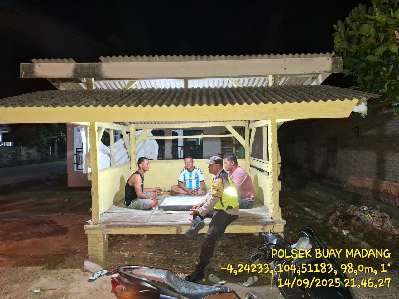 “Dalam kegiatan tersebut anggota menyampaikan pesan Kamtibmas kepada warga masyarakat di Pos Ronda tersebut dan meminta untuk menggiatkan kembali ronda malam.Kita himbau kepada masyarakat agar selalu menjaga keamanan dan ketertiban di lingkungan tempat tinggalnya, supaya tetap kondusif,” ucap Kapolsek Buay Madang, AKP. Suwandi.