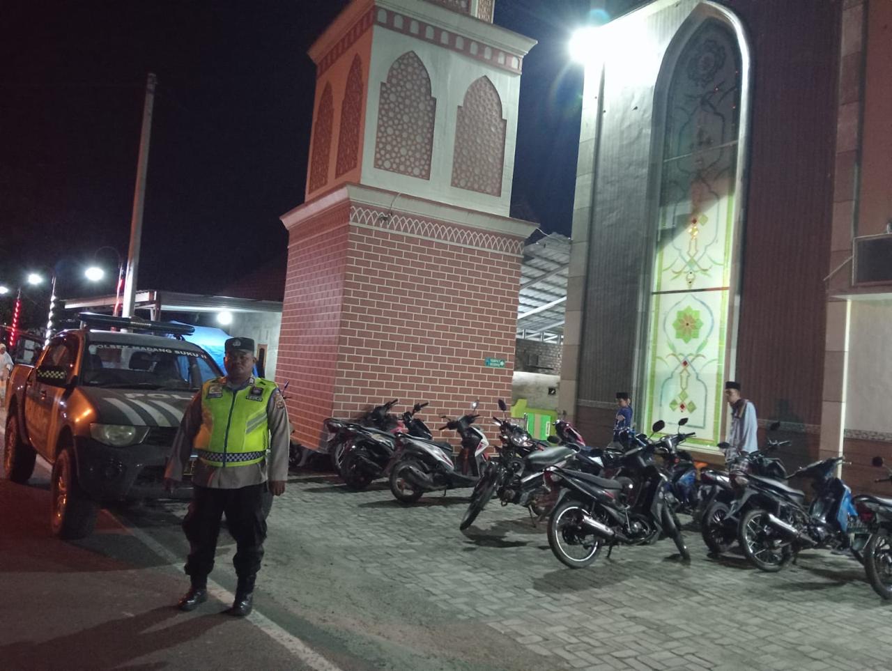 INEWSFAKTA.COM | OKU TIMUR – Personil Polsek Madang Suku II, Polres Oku Timur, Polda Sumsel, melaksanakan patroli dan Pengamanan shalat Tarawih di Masjid Agung At- Taqwa Desa Pandan Agung , Kecamatan Madang Suku II, Kab. Oku Timur. Kegiatan tersebut dalam rangka menjaga situasi keamanan dan ketertiban masyarakat (Kamtibmas) selama bulan suci Ramadan, di wilayah hukum Polsek Madang Suku II (malam), Rabu (18/03/2026).