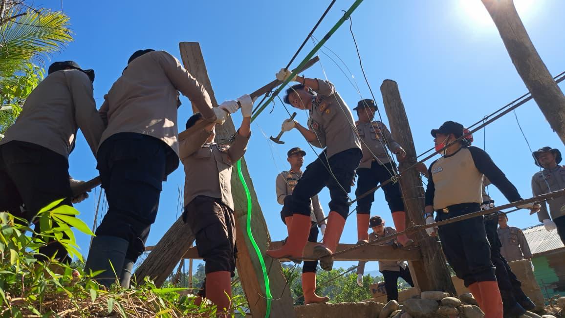 “Jembatan yang dibangun ini merupakan penghubung masyarakat dari perkampungan menuju kebun dan pasar,” ujar AKBP Hyrowo di sela-sela kegiatan gotong royong bersama warga.