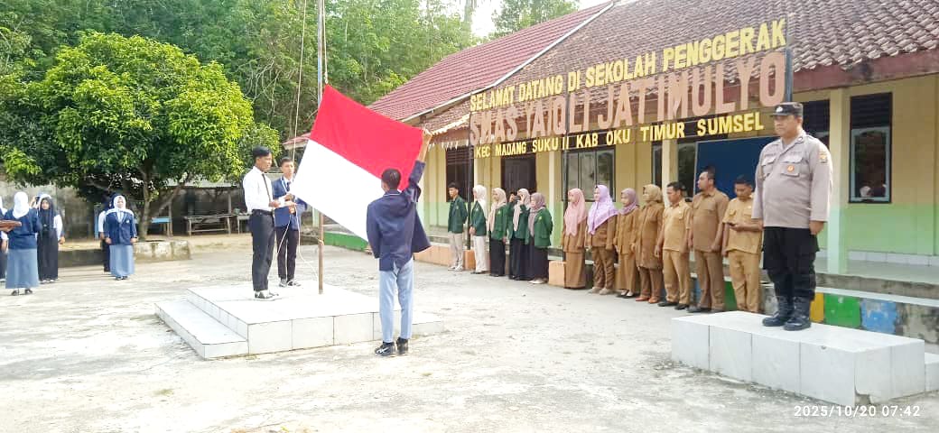 INEWSFAKTA.COM | Oku Timur – Kapolsek Madang Suku II, Polres Oku Timur, Polda Sumsel, IPTU, Ario Wibowo, ST, diwakili Kanit Samapta melaksanakan kegiatan Cooling System Program Polri Goes To School Di SMAS Yaiqli Jatimulyo Kec. Madang Suku II Kab. OKU Timur. Dalam kegiatan tersebut Polsek Madang Suku II, hadir sebagai Irup atau Pembina Upacara, Senin (20/10/2025).