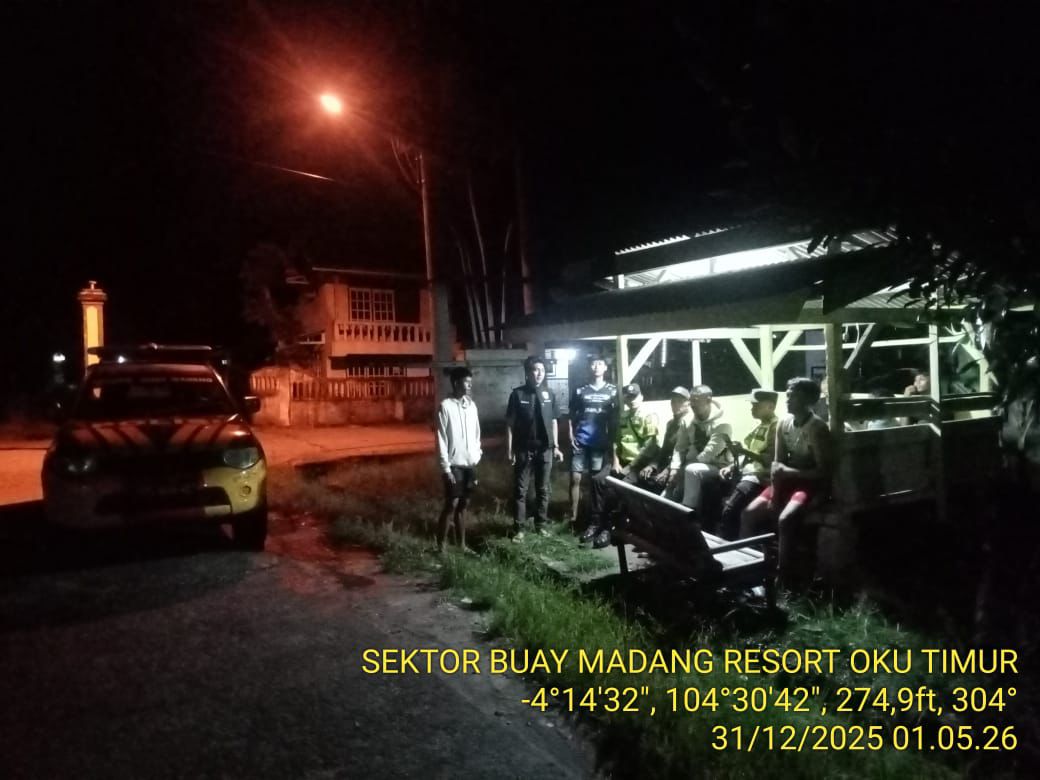 INEWSFAKTA.COM | OKU Timur – Polsek Buay, Madang Polres ,Oku Timur Polda Sumsel, menyambangi warga saat berada di Pos Kampling dini hari pukul 12:05 wib,di desa Sridadi Kec. Buay Madang. Kegiatan ini dalam rangka menjalin silaturrahmi dan sinergitas antara Polsek dan Masyarakat untuk bersama sama menjaga stuasi kondusif kamtibmas dan mendorong masyarakat dalam menjaga keamanan lingkungan(malam), Kamis (14/12/2025).