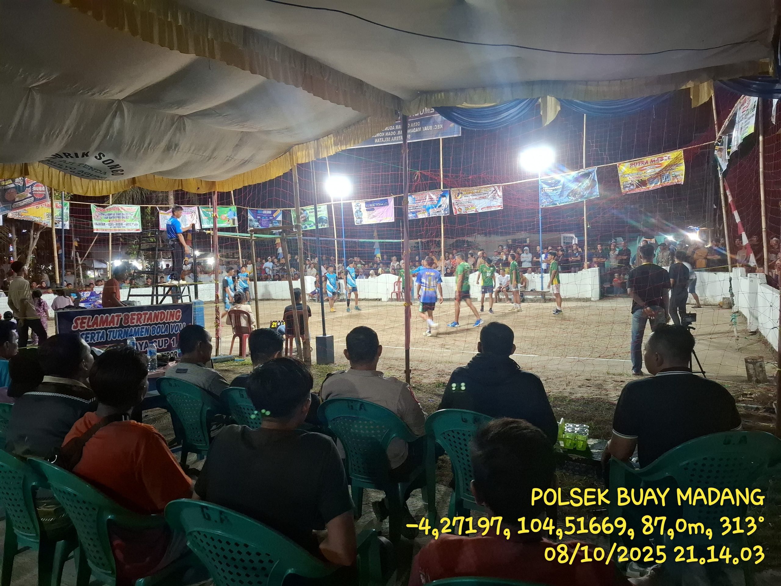 INEWSFAKTA.COM | Oku Timur – Anggota Polsek Buay Madang, Polres Oku Timur, Polda Sumsel,melaksanakan pengamanan kegiatan turnamen bola voli yang digelar di Lapangan Desa Ganjar Agung, Kecamatan Buay Madang, Kab. Oku Timur, pada minggu (10/10/2025) malam.