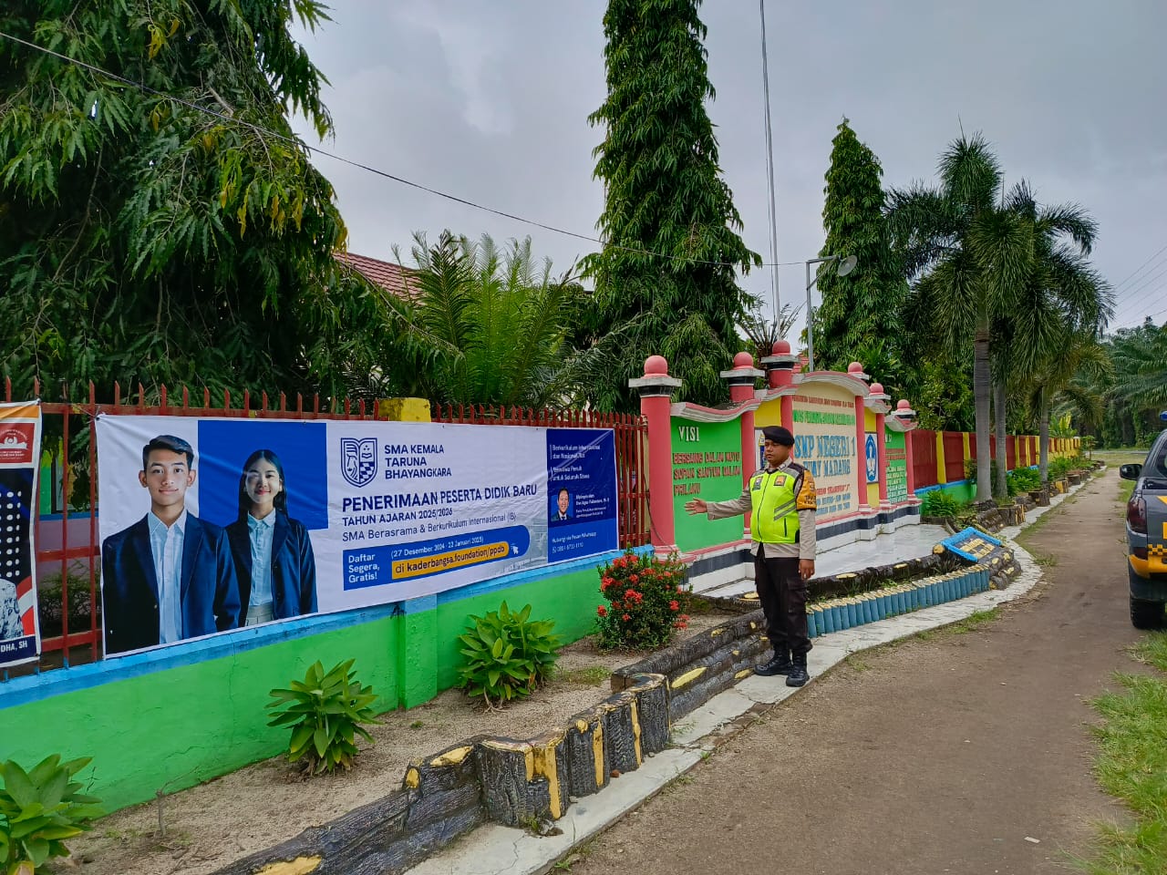 Polsek Buay Madang, Pasang Banner PPDB SMA Kemala Taruna Bhayangkara Di Depan SMP N 1 Buay Madang