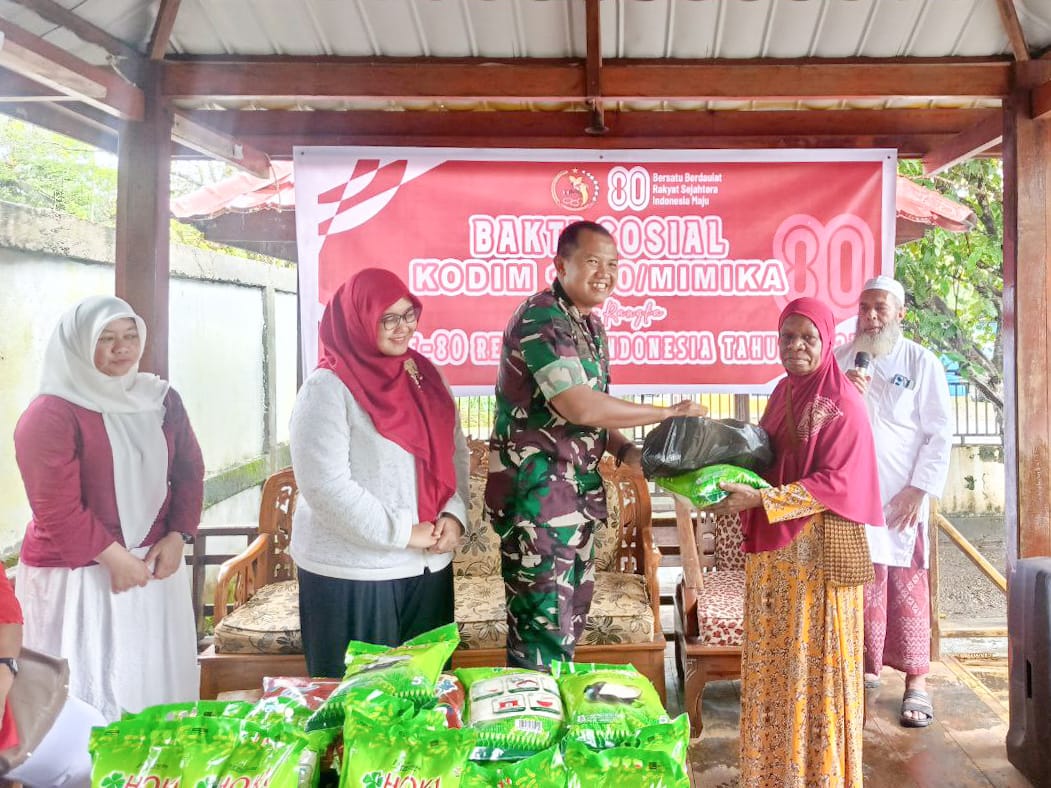 Sambut HUT RI Ke-80 Tahun 2025, Kodim 1710/Mimika Gelar Bakti Sosial Bagi Sembako Kepada Kaum Dhuafa dan Mualaf