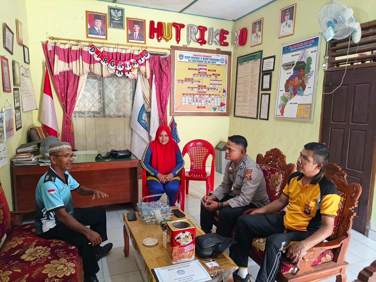 INEWSFAKTA.COM | Oku Timur -Kanit Binmas Polsek Buay Madang, Polres Oku Timur, Polda Sumsel, Bripka Muhtaromin bersama anggota Bhabinkamtibmas melaksanakan sambang ke sekolah SMP Negeri 02 Tanjung Bulan, Kecamatan Buay Madang, Kab. Oku Timur. Kegiatan tersebut dalam rangka mengantisipasi gangguan kamtibmas di lingkungan sekolah, Jum’at (21/11/2025).