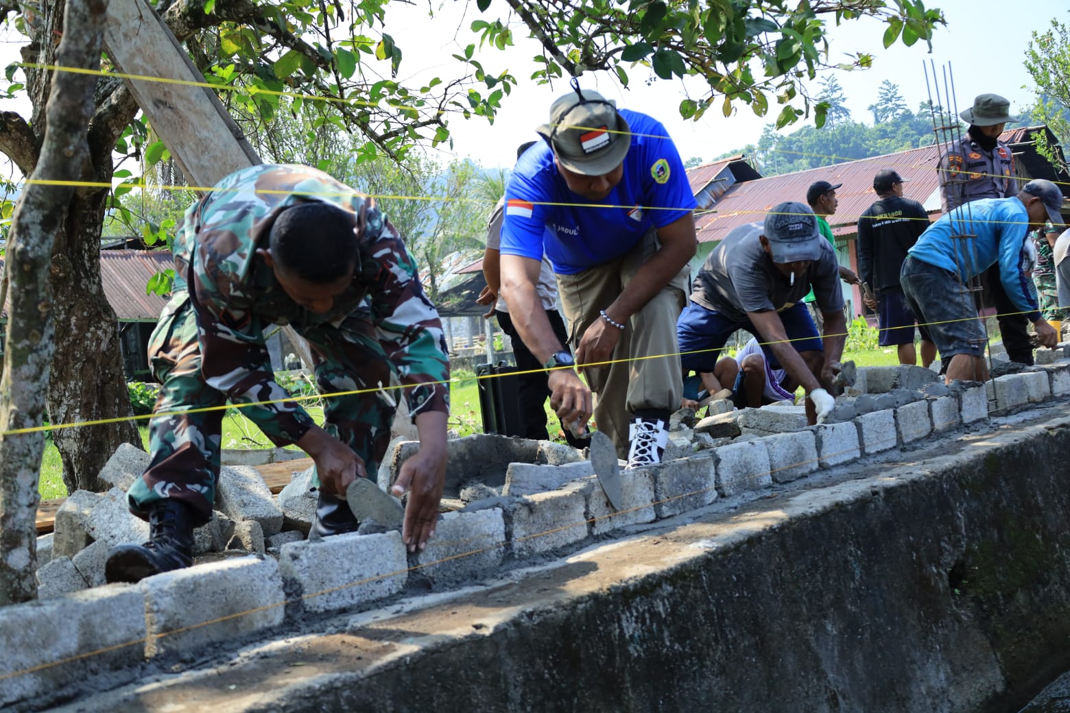 Satgas TMMD Kodim 1505/Tidore Bersama Warga Bangun Pagar Jalan, Bukti Nyata Kemanunggalan TNI-Rakyat