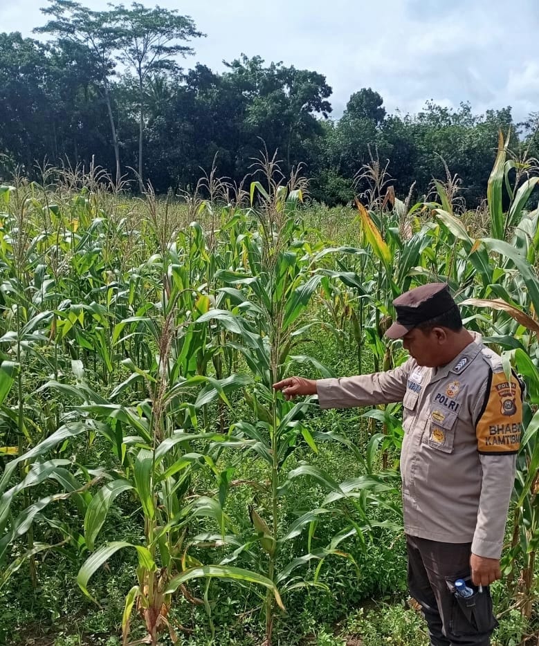 INEWSFAKTA.COM | Oku Timur – Bhabinkamtibmas Polsek Madang Suku II, Polres Oku Timur, Polda Sumsel, Aipda , Marlan Ahadi melaksanakan kegiatan pengecekan perkembangan pertumbuhan tanaman jagung di lahan binaan dengan luas 1 hektar yang berlokasi di Desa Batumarta X,Kecamatan Madang Suku III, Kab. Oku Timur, Senin (13/04/2026).
