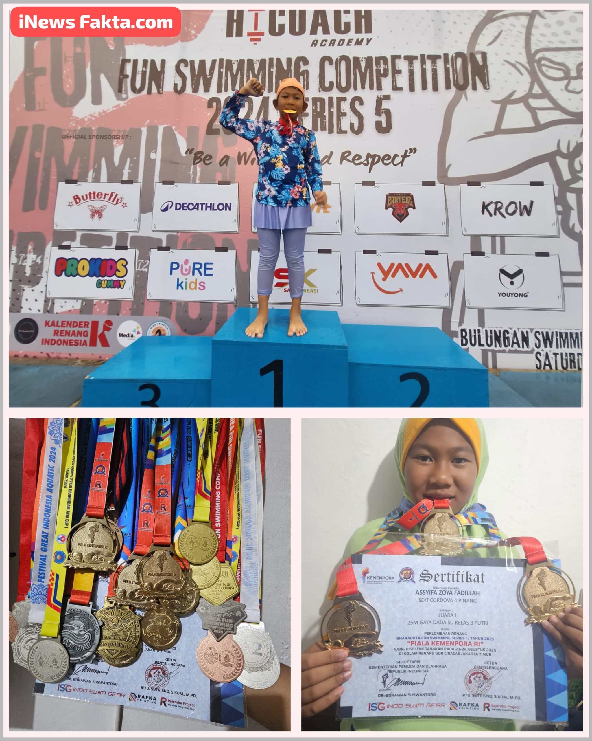 INEWSFAKTA.COM –| TANGERANG – Di usianya yang baru 8 tahun, sosok mungil bernama As’yifa Zoya Fadillah sudah berhasil menorehkan segudang prestasi yang membanggakan. Siswi kelas 3 SDIT Cordova 4 Pinang, Kota Tangerang ini tak hanya mengumpulkan medali demi medali, tetapi juga menyimpan cerita perjuangan yang membuat siapa pun yang mendengarnya akan terharu.(21/09/2025)