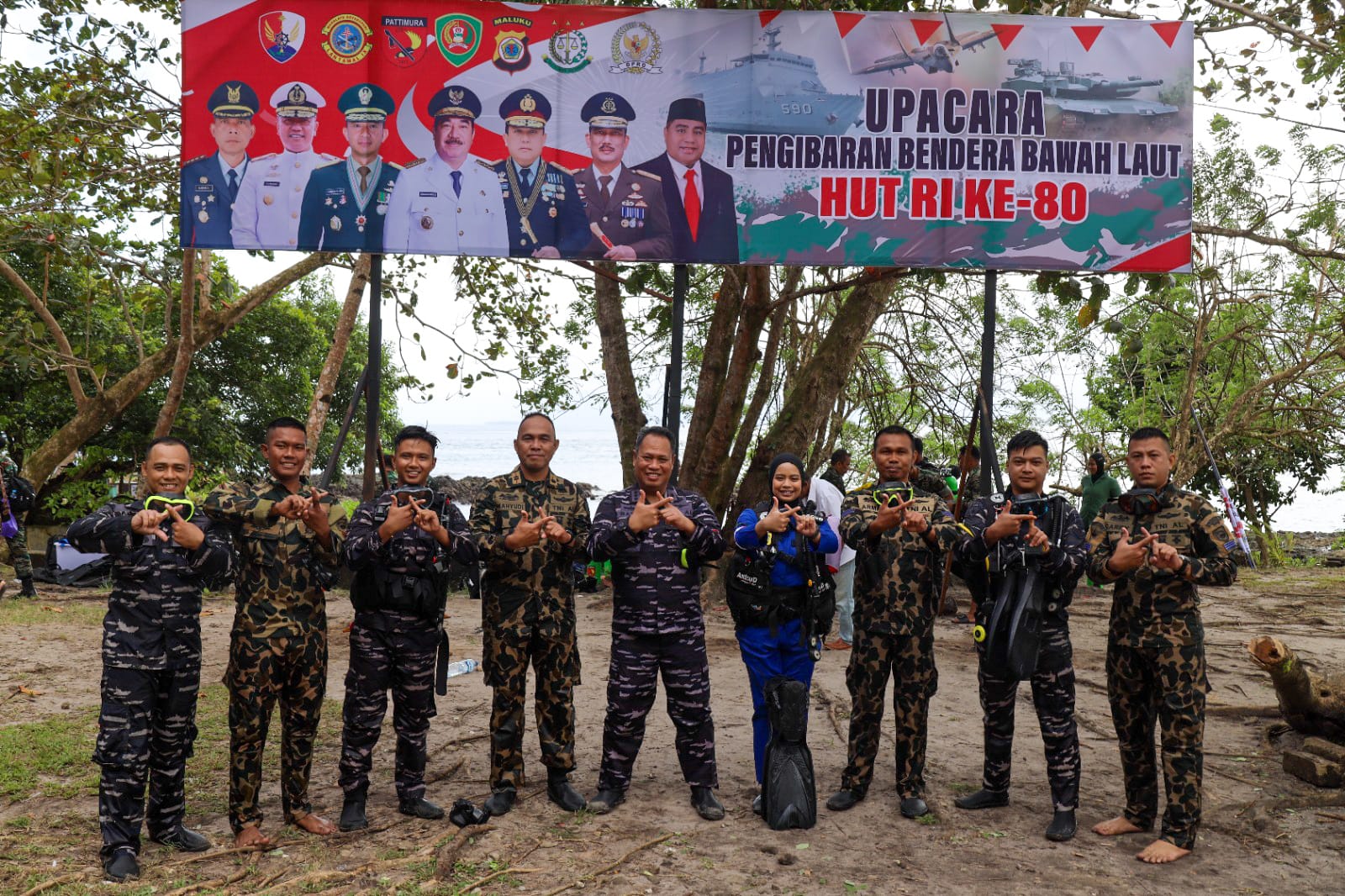 “Mengibarkan bendera dibawah laut menyampaikan kepada kita semua bahwasannya negara kita ini tidak hanya meliputi daratan tapi juga laut yang sangat luas, apalagi di Maluku yang menjadi urat nadi persatuan dan juga sebagai sumber penghidupan bagi masyarakat dan bangsa Indonesia,” ujar Pangdam XV Pattimura.