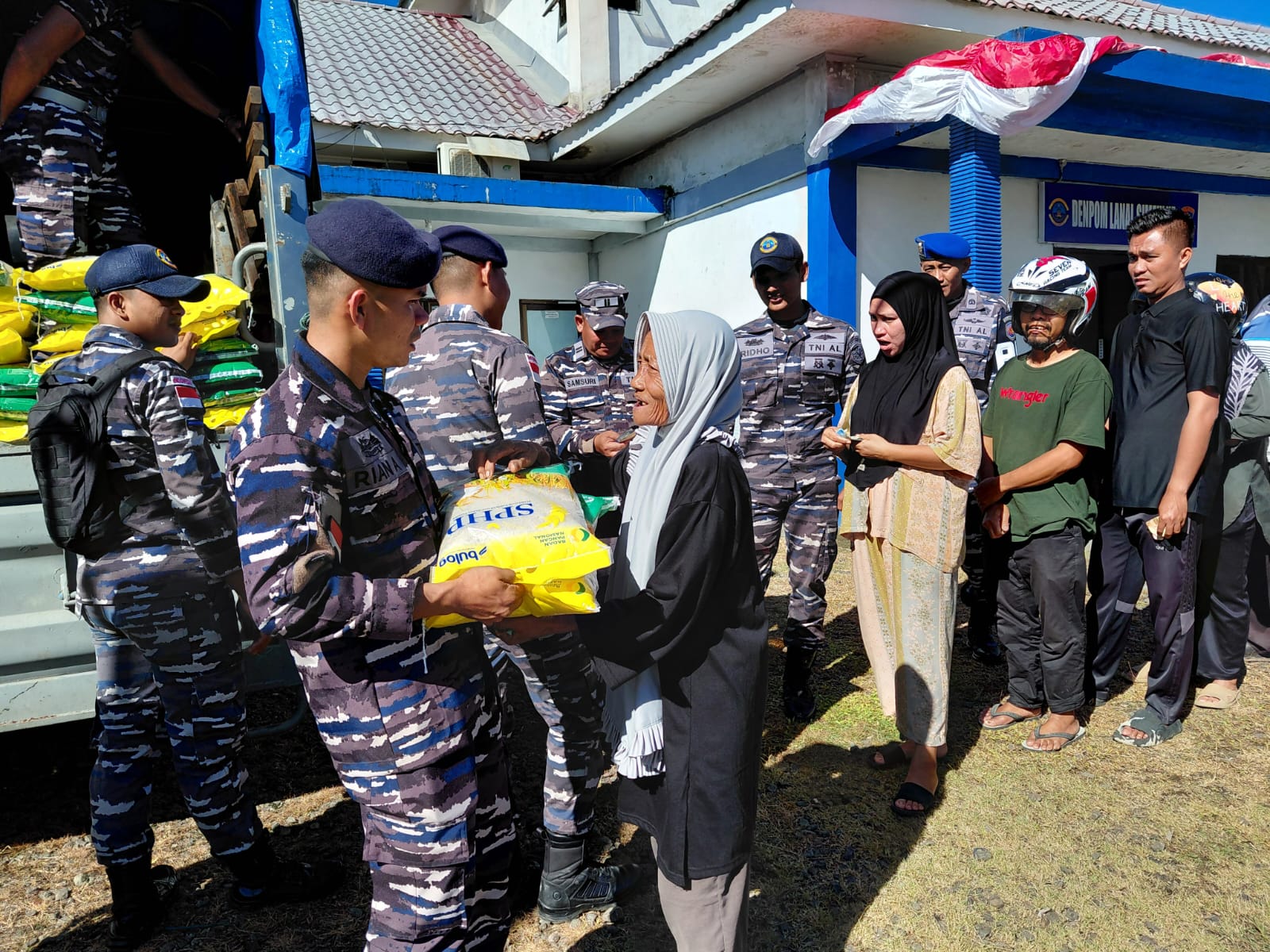 INEWSFAKTA.COM | .| TNI AL, Simeulue,- Berlokasi di depan Kantor Primkopal Lanal Simeulue, Komandan Pangkalan TNI Angkatan Laut Letkol Laut (P) Wisnu Pryangga N, S.T., M.Tr. Opsla., beserta Prajurit Lanal Simeulue melaksanakan kegiatan penyaluran beras Stabilisasi Pasokan dan Harga Pangan (SPHP) melalui program Gerakan Pangan Murah (GPM) yang dilaksanakan atas kerjasama dengan Perum Bulog di Kabupaten Simeulue, Provinsi Aceh, Selasa (2/9/2025).