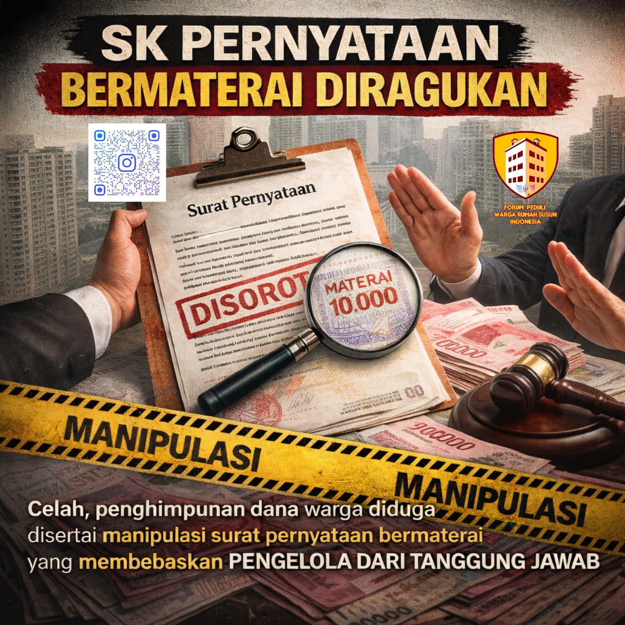INEWSFAKTA.COM | Jakarta, 23, 1,2026 – Praktik penggunaan surat pernyataan bermaterai dalam pengelolaan rumah susun dan apartemen kian menimbulkan tanda tanya. Selain dijadikan dasar administratif untuk menghimpun dana warga, dokumen tersebut juga kerap disusun dengan muatan pelepasan tanggung jawab pengelola maupun pihak-pihak terkait, termasuk notaris.