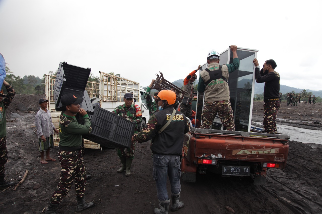 Untuk memperkuat respons di lapangan, Prajurit Divif 2 Kostrad mendirikan tenda peleton, dapur lapangan, serta memperkuat penyekatan di zona terdampak. Evakuasi barang berharga dan warga dilakukan secara terkoordinasi, didukung penuh oleh personel Koramil 0821-14/Pronojiwo yang sejak awal turut melakukan penyisiran dan pengamanan wilayah.