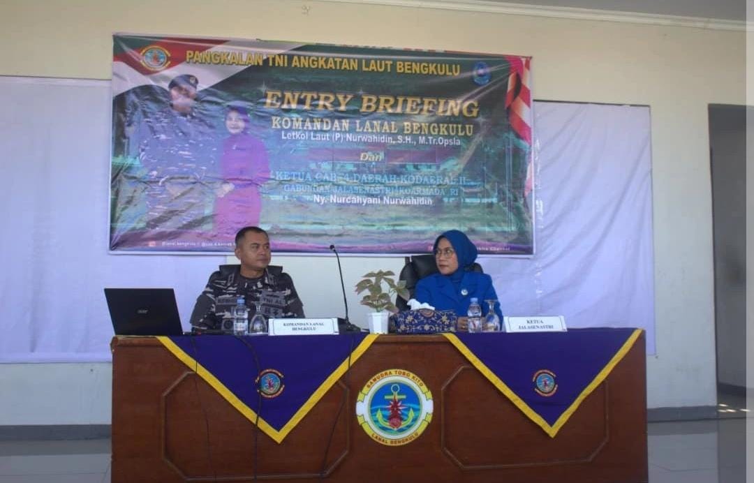 INEWSFAKTA.COM | TNI AL, Bengkulu,- Pangkalan TNI Angkatan Laut Bengkulu melaksanakan acara penyambutan kedatangan Komandan Lanal Bengkulu yang baru Letkol Laut (P) Nurwahidin, S.H., M.Tr. Opsla., dan Ketua Cabang 4 Daerah Kodaeral II Gabungan Jalasenastri Koarmada RI Ny. Nurcahyani Nurwahidin, bertempat di Mako Lanal Bengkulu, Jalan RE Martadinata No.10, Kelurahan Kandang, Kecamatan Kampung Melayu, Kota Bengkulu, Senin (15/9/2025).