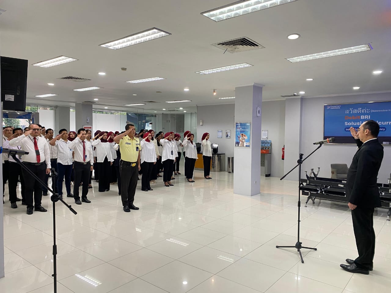 Seluruh peserta melaksanakan Mengheningkan Cipta untuk mengenang jasa para pahlawan, kemudian dilanjutkan dengan pembacaan teks Pancasila, UUD 1945, serta Ikrar Pahlawan. Dalam amanat pembina upacara, disampaikan pesan mengenai pentingnya meneladani perjuangan para pahlawan, menumbuhkan semangat nasionalisme, serta menjaga integritas dalam bekerja dan melayani nasabah.